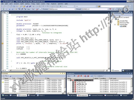 編譯器與工具)完全集成到 Microsoft* Visual Studio* 2005 中。PVF 具有 PGI 最新版本