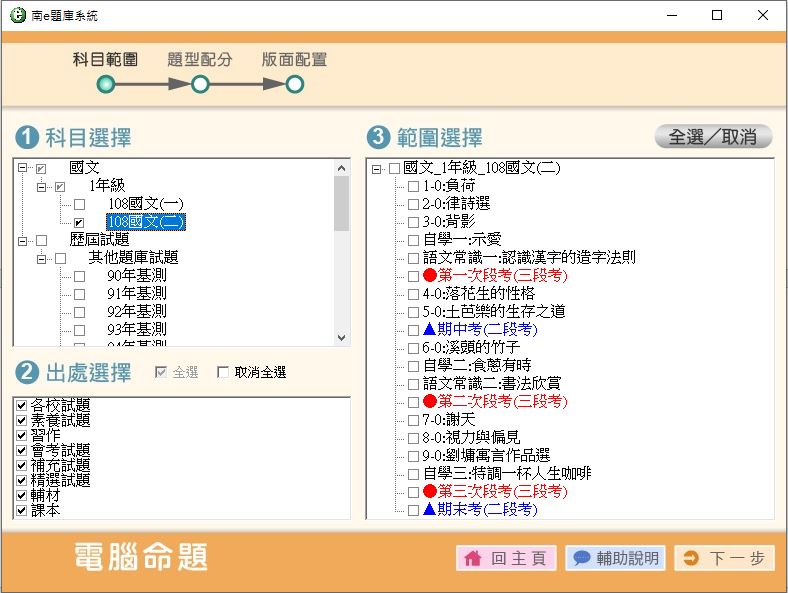 108學年下學期 國中命題光碟 南一版 1年級 全領域(108課綱、含上、下學期)題庫光碟(不包含:藝文+綜合+健體)